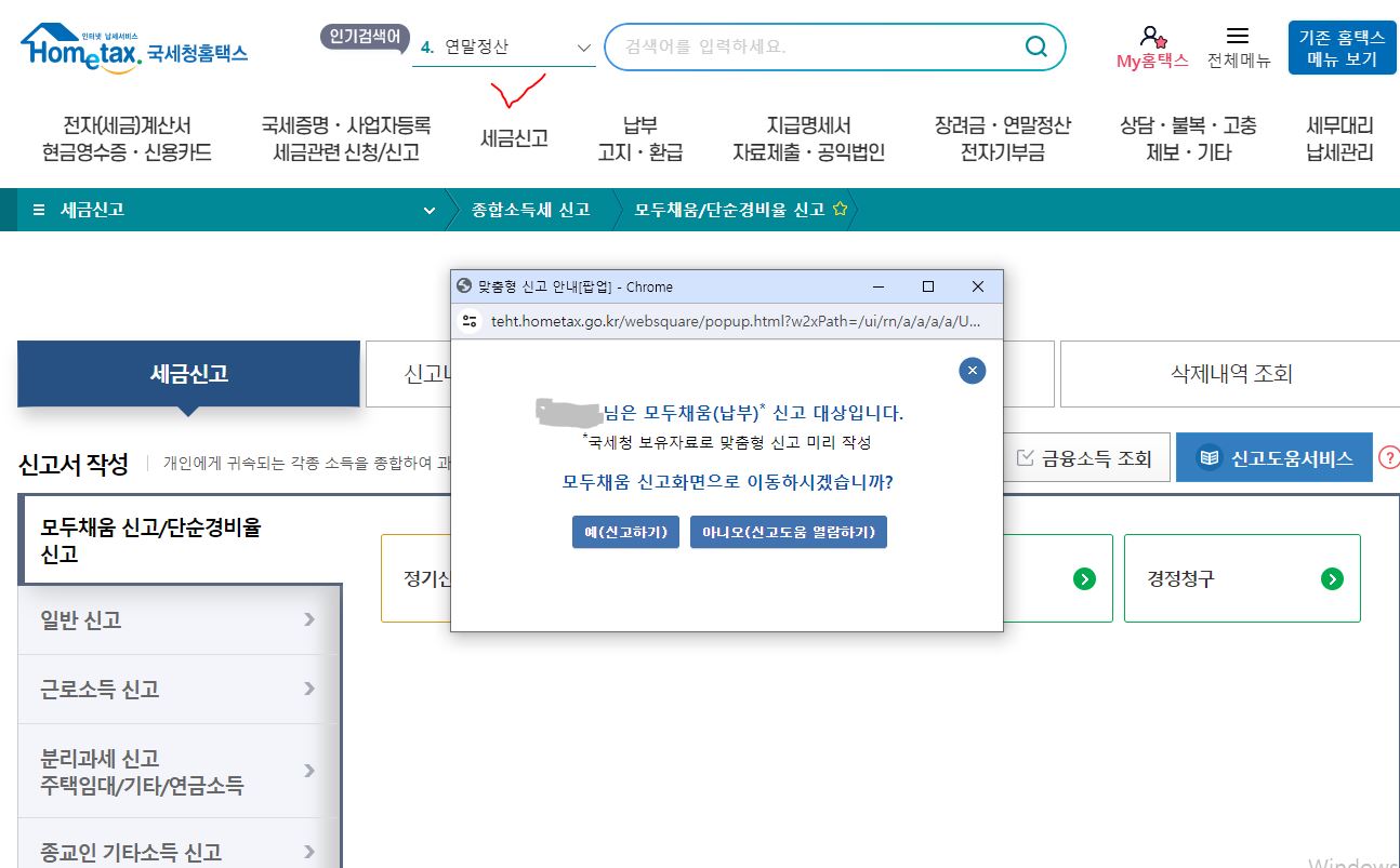 - 홈택스 종합소득세 신고 클릭