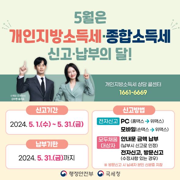 2024년 5월 종합소득세 개인지방소득세 신고 납부 방법