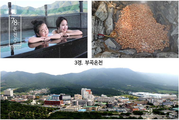 '부곡온천'은 전국에서 최고 수준의 수온(78℃)을 자랑하는 온천으로, 의료적 효능이 입증된 것으로 유명합니다. 이 온천은 뜨거운 온천수로 활성산소를 제거하여 피부노화 방지, 성인병 치료, 그리고 피부미용에 탁월한 효과를 제공합니다.