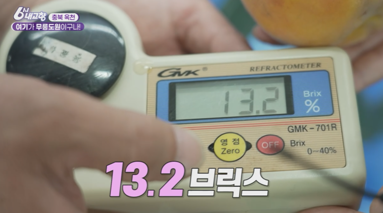 아무거나 드셔보셔도 굉장히 맛있어요. 100% 저는 이거 현장에서 제가 선택한 랜덤 복숭아 즉석에서 당도를 재봤는데요.