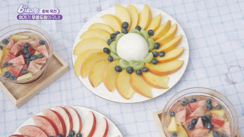 청량감을 더해줄 복숭아 화채 복숭아 주스까지 고향에 복스러운 복덩이 미녀는 복숭아를 좋아한다고 자타공인 미녀 리포터인 저도 복숭아 맛에 빠져들더라고요. 아삭하면서 또 약간 새콤하면서 달콤하면서 풋풋한 달콤함이 있어요. 부부의 복숭아 농사 경력 25년 내공이 깃든 맛이니 더욱 특별할 수밖에요. 아니 거의다 타신 거예요. 진짜 기분이 좋아요. 지금 뭐 고민 좀 했는데 타여도 진짜 웃을 수 있어요.