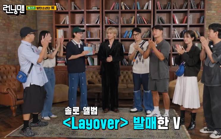 오늘 게임에 맞게 땅을 소유한 지주로 의상으로 코디하고 온 뷔는 안 그래도 부티가 나는데 벨벳정장으로 입고 온 패션은 부자 같은 모습으로 런닝맨들에게 멋있다는 칭찬과 부러움이었습니다.
