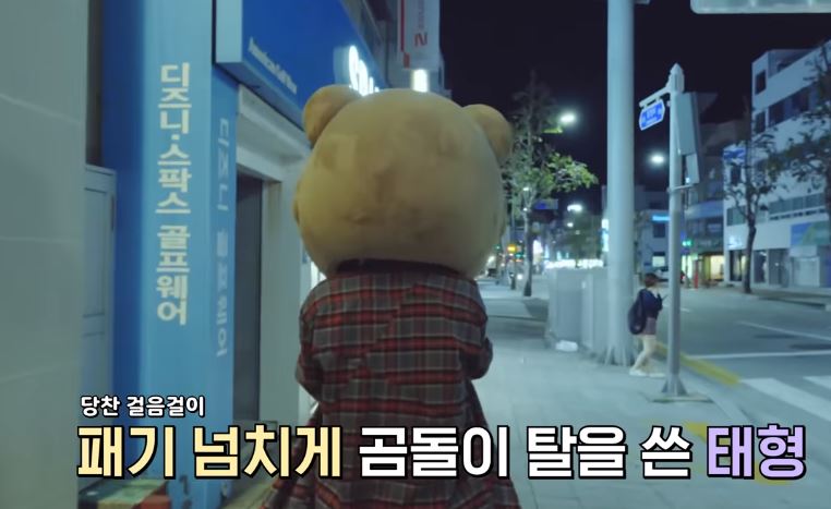 강릉에 도착한 뷔는 작은 공연장에서 라이브를 준비하였고, 곰돌이 탈을 쓴 스태프가 거리에서 신인가수 '브이'의 공연이라고 소개하여 관객을 모았습니다. 뷔는 초대된 관객들에게 20초 동안 깜짝 라이브 공연을 선사하였고, 관람료로 1명당 500원을 내고 1∼2명씩 입장한 강릉지역 학생, 시민, 관광객들은 뷔의 공연을 놀란 표정으로 감상하였습니다.