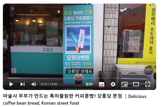 방탄소년단의 공식 유튜브 채널에 공개된 '뷔의 20초 라이브 in 강릉' 영상에는 뷔가 "강릉 '커피콩빵'이 유명하다"고 언급한 후 KTX를 타고 강릉으로 이동하는 모습이 포함되어 있습니다.