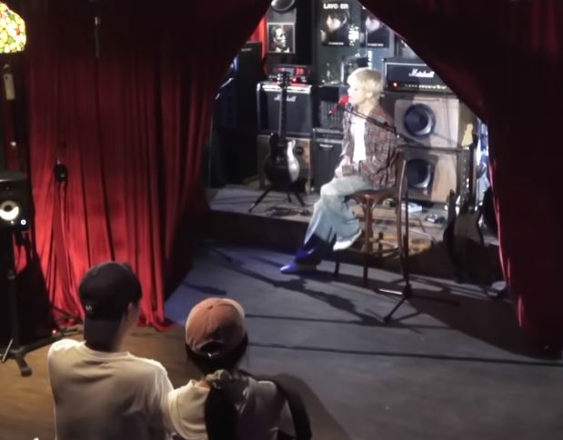 강릉에 도착한 뷔는 작은 공연장에서 라이브를 준비하였고, 곰돌이 탈을 쓴 스태프가 거리에서 신인가수 '브이'의 공연이라고 소개하여 관객을 모았습니다. 뷔는 초대된 관객들에게 20초 동안 깜짝 라이브 공연을 선사하였고, 관람료로 1명당 500원을 내고 1∼2명씩 입장한 강릉지역 학생, 시민, 관광객들은 뷔의 공연을 놀란 표정으로 감상하였습니다.