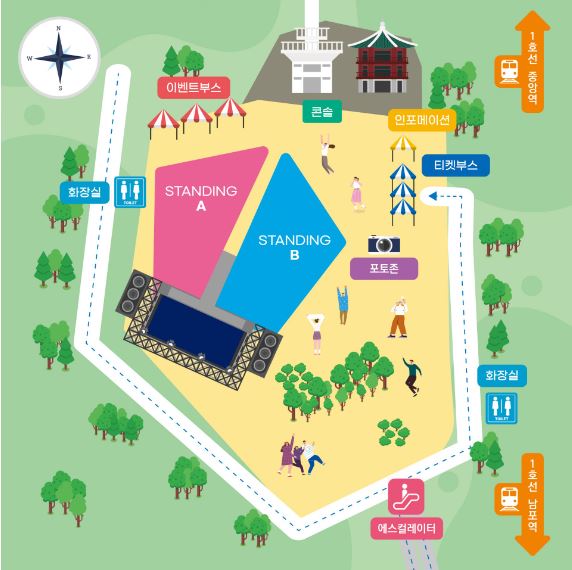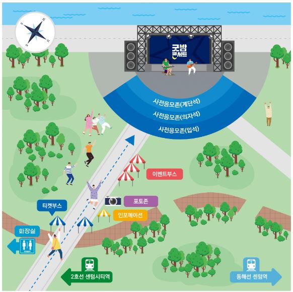 티켓 없이 현장 참석 가능합니다. 열린 공간에서 진행되므로, 행사장 밖에서 관람은 가능하며, 단, 3-4일차 트롯, 케이팝 콘서트의 경우 무대 옆 대형 전광판을 통해서 즐기실 수 있습니다.